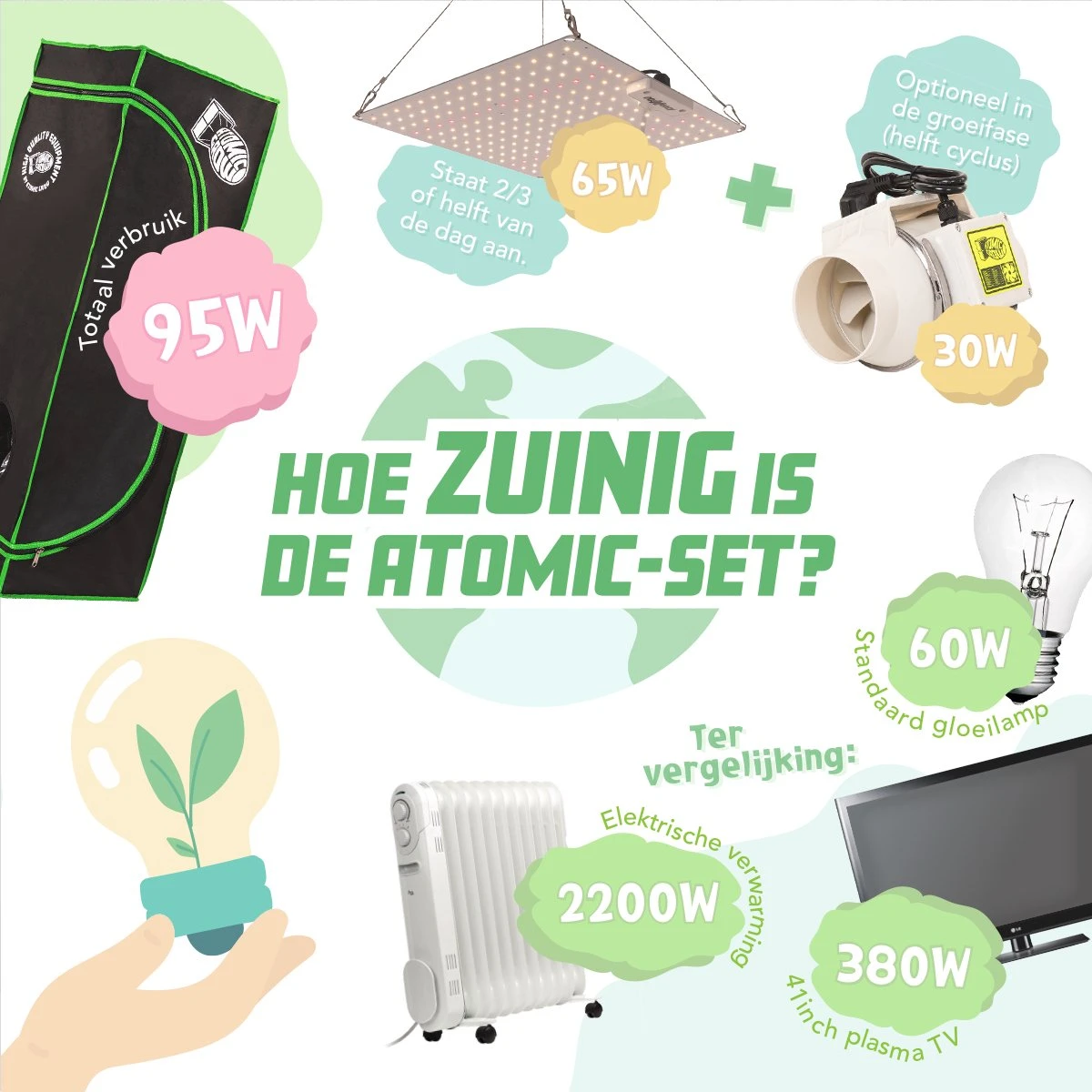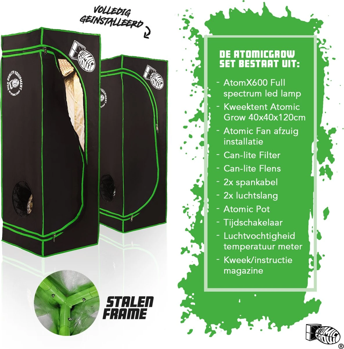 Atomic Grow is een Nederlands bedrijf ontstaan uit passie voor kweken. Na jaren ervaring en intensief testen hebben we de ultieme kweekset ontwikkeld. Ontwikkeld om zo krachtig en efficiënt mogelijk te kunnen kweken. De set is energie zuinig zonder dat de prestaties hieronder lijden.