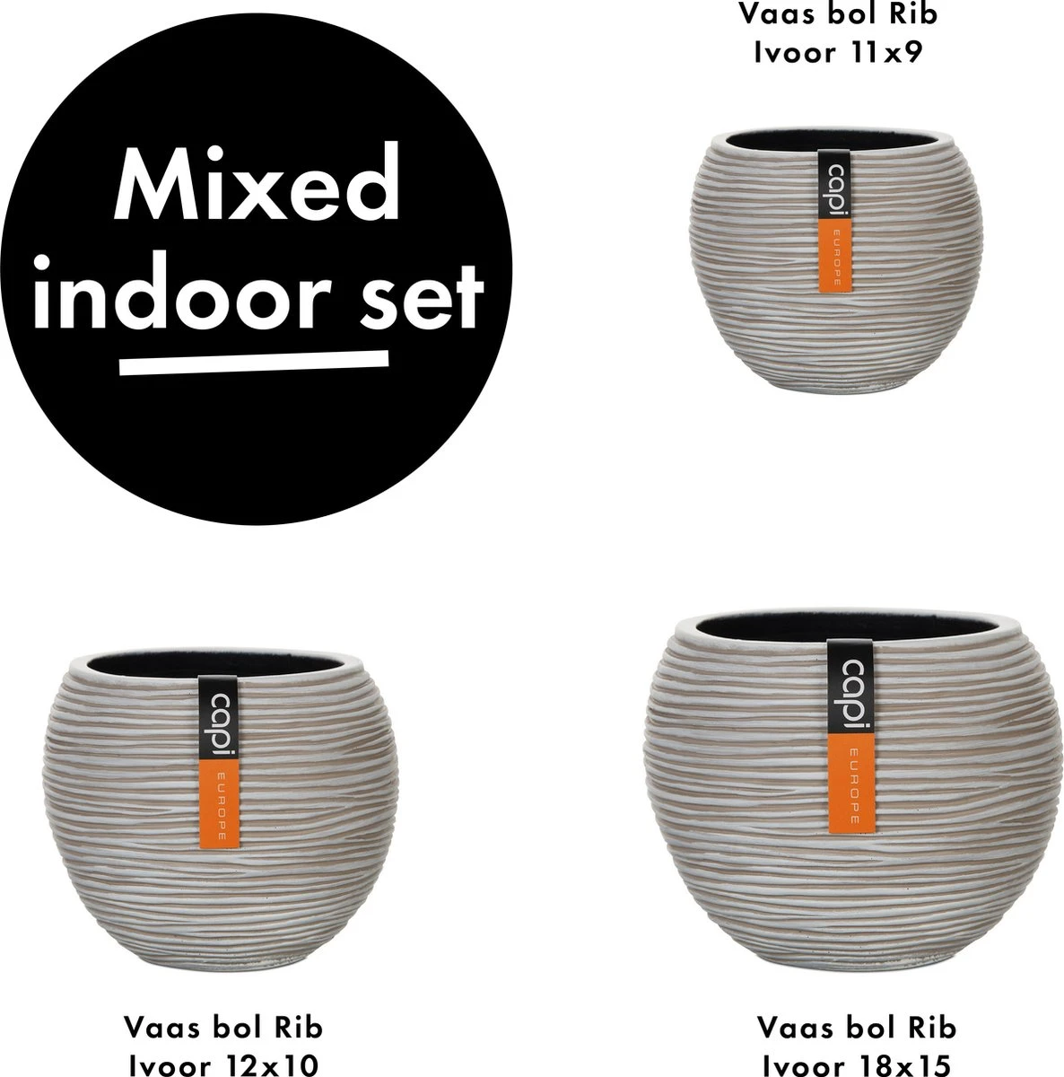 Capi Europe – Set Van 3 – Bloempot Binnen – Rib Ivoor