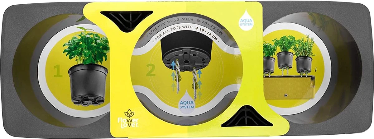 Alle standaard plantenpotten met een diameter van 10-12 cm kunnen in het pakket worden geïntegreerd. Zo kunnen de gekochte kruidenpotten probleemloos en eenvoudig met de CobbleTrio worden gebruikt. Hij biedt plaats aan 3 plantenpotten.