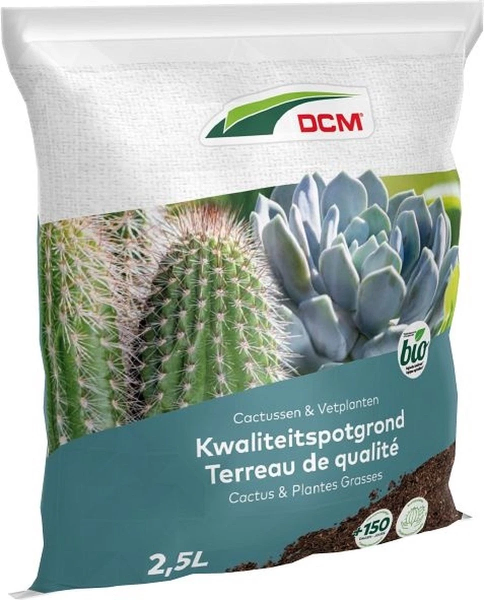 DCM Potgrond Cactussen & Vetplanten behoud zijn luchtige structuur dankzij de toevoeging van lava en zorgt zo voor het behoud van gezonde wortels en een goede drainage. En dat is belangrijk, want cactussen, vet- en rotsplanten houden niet van natte wortels, dus een gewone potgrond volstaat niet. De verhouding tussen lucht en vocht zal perfect geregeld worden. Deze potgrond is organisch bemest om planten alle nodige voedingsstoffen te geven.