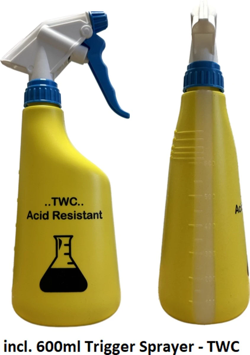 Deze set wordt geleverd incl. een 600ml TWC Trigger Sprayer – Acid resistant.