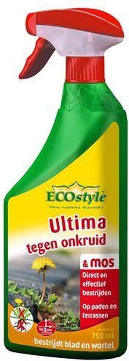 Met ECOstyle Ultima tegen onkruid & mos kun je op ecologische wijze verantwoord onkruid bestrijden. Ultima pakt zowel het blad als ook de wortels aan van het onkruid in jouw tuin, oprit en terras.
