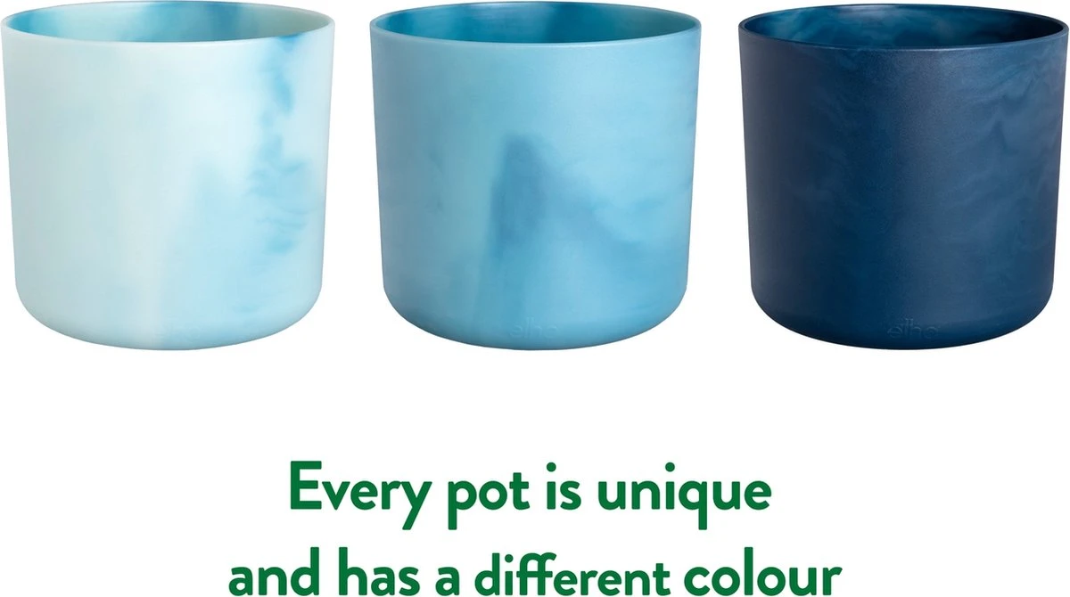 De oorsprong van de afgedankte touwen en visnetten komt terug in de blauw en groen marmeren accenten in de potten van ‘The Ocean Collection’. Zo zorgen we er bij elho voor dat we onze oceanen blijven bewonderen en de schoonheid van afval laten zien. Het maritieme afval maakt elke bloempot uniek en zorgt voor verschillende kleurtinten en een prachtig marmereffect. Precies zoals de kleur van de oceanen. Help om oceaanvervuiling te voorkomen en verrijk je huis met de schoonheid van maritiem afval.