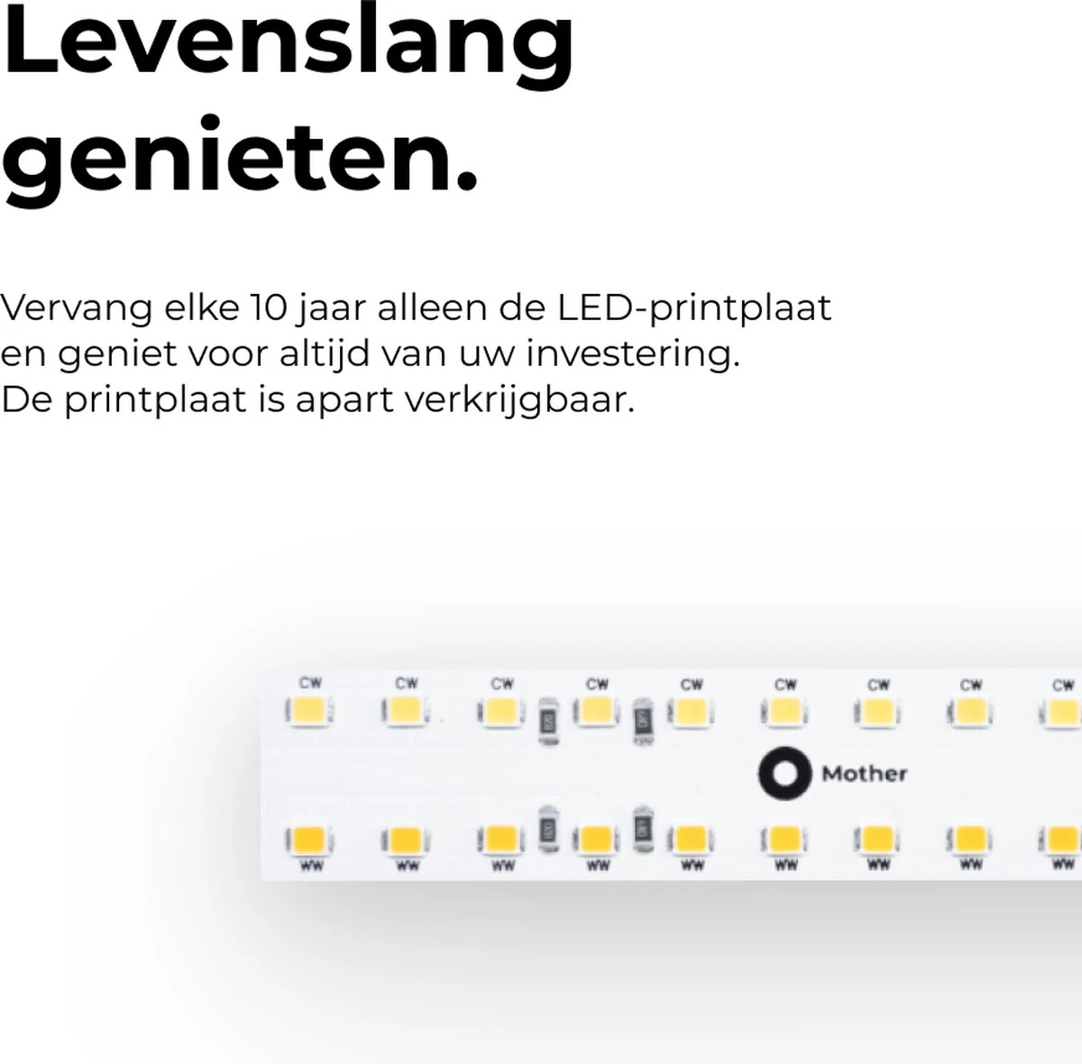 PlantSpectrum32 is de meest doeltreffende en eerste duurzame oplossing in zijn soort. De aluminium behuizing zorgt ervoor dat de LED’s maximaal gekoeld worden en het spectrum behouden blijft gedurende de gehele levensloop. Bovendien is PlantSpectrum32 heel modulair; Wens je de lichtmodule te bevestigen in een rek, aan het plafond, muur of op een kastje te plaatsen? Bezoek de website www.mother.life om alle mogelijkheden te zien.