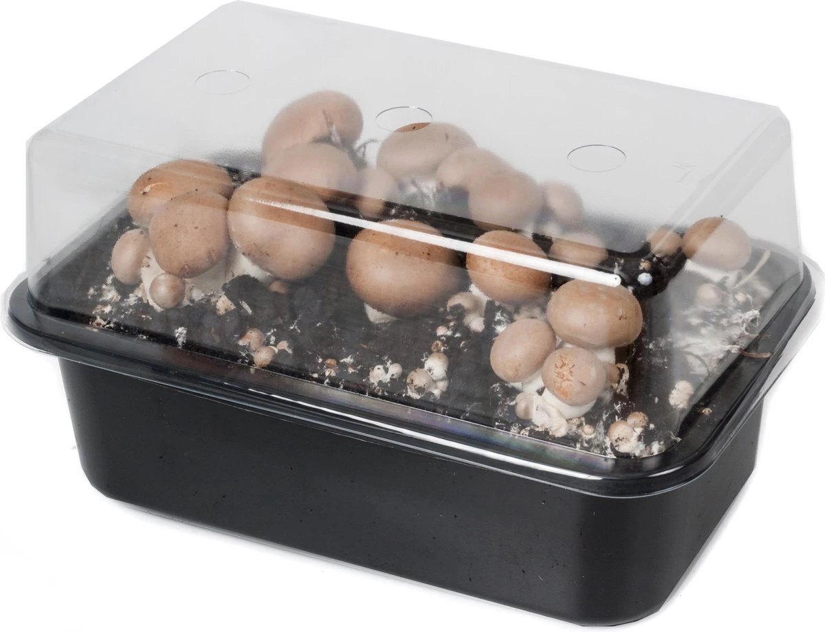 | Verpakkingsinhoud | Een kweekbak met een laag doorgroeide compost en een zak dekaarde |