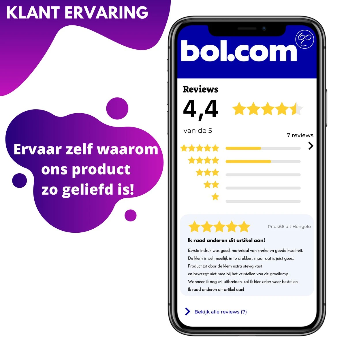 Het product is getest en is gecertificeerd volgens de normen FFC, ETL, ROHS en CE. Daarom kun je de groeilamp met een gerust hart aan laten wanneer je niet thuis bent.