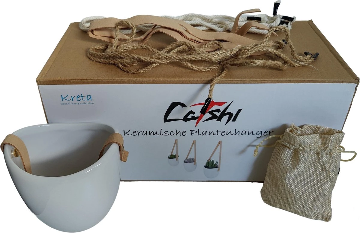 Merkloos Plantenhanger Keramiek – Set Van 3 – Steen- Hangpot – Hangende Bloempot Plantenpot Met 3 Verschillende Koorden – 12 X 11 X 9.5 Cm