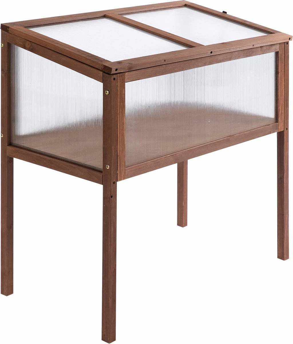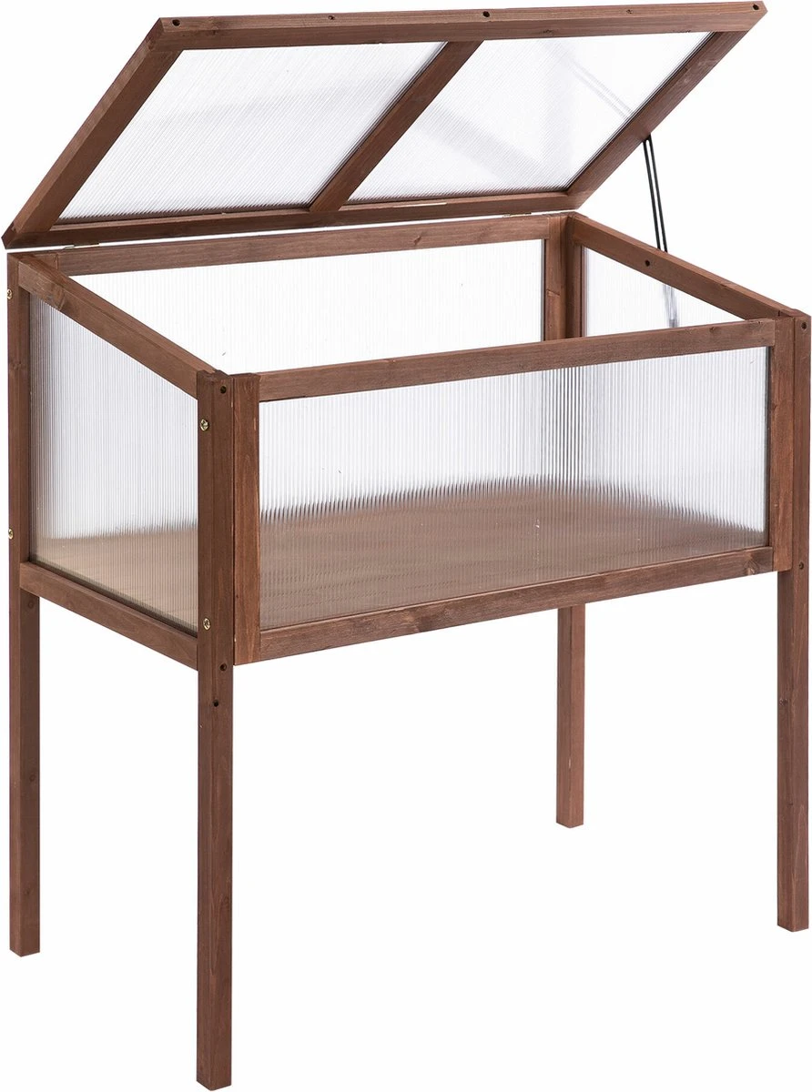 Outsunny Verhoogd Frame Van Hout Koude Kas Kruidenbed Voor Tuin Balkon Bruin Hout Pc-plaat 845-472