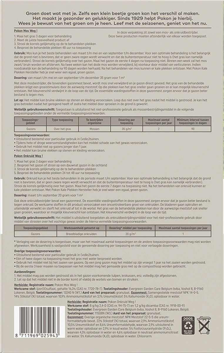 Last van onkruid en mos? Jouw gazon verdient het allerbeste en dat is precies wat je in huis haalt met Pokon Onkruid en Mos Weg!. Deze duo onkruidverdelger is speciaal ontwikkeld om snel en effectief mos, paardenbloemen, klavers, madeliefjes, boterbloempjes en meer te bestrijden. Voor je het weet is het gras aan jouw kant weer groener!