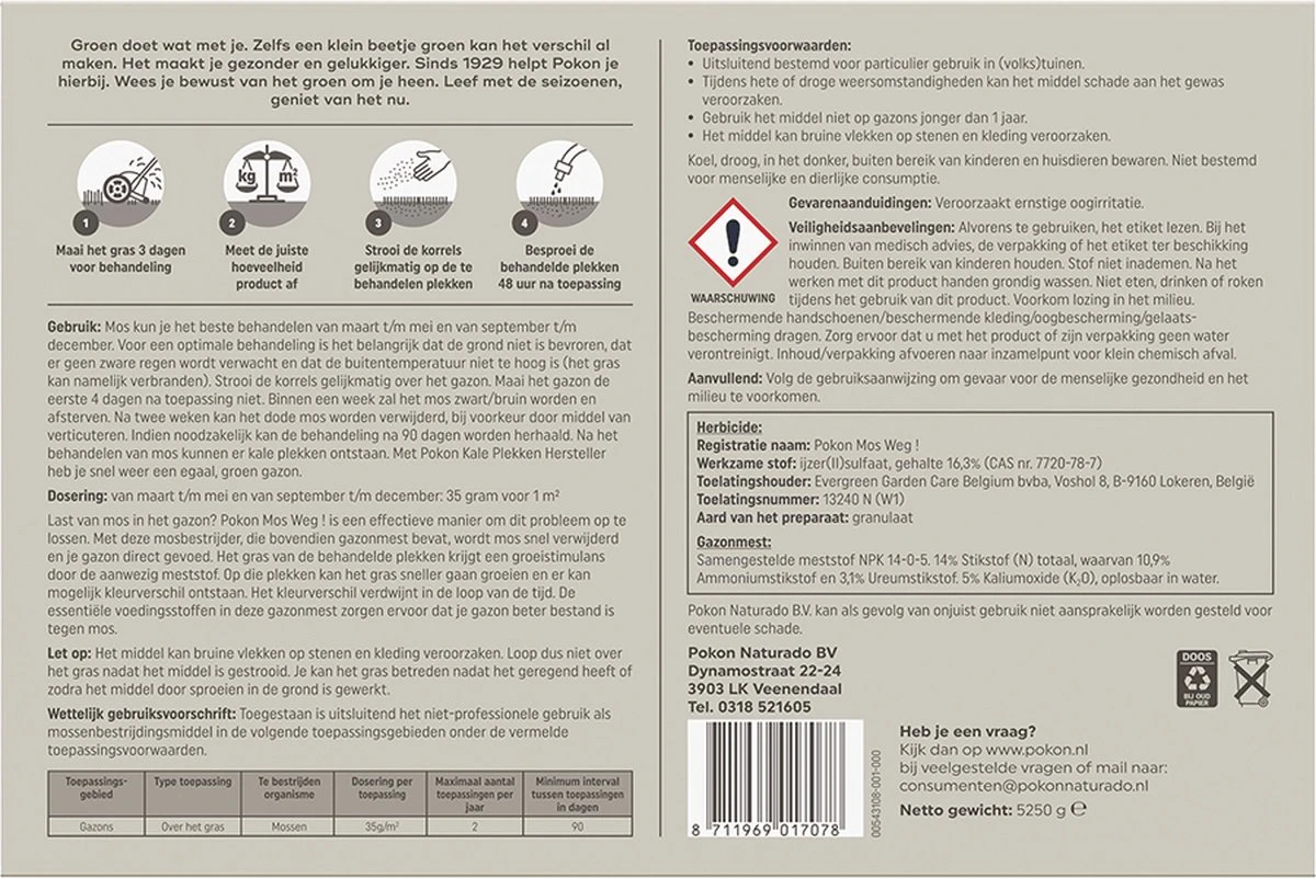 Pokon Mos Weg! – 5,25kg – Onkruidverdelger – Geschikt Voor 150m² – Mosbestrijder