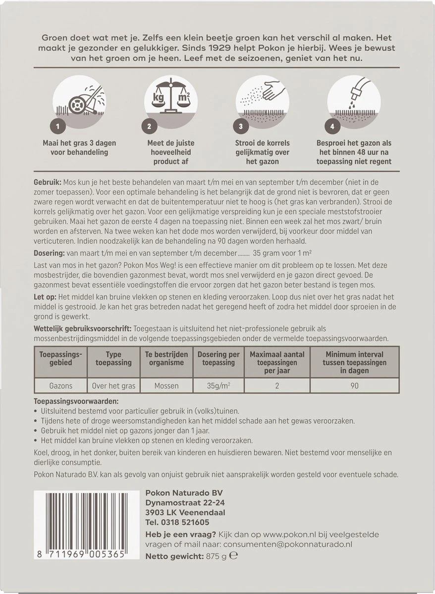 Pokon Mos Weg! – 875gr – Onkruidverdelger – Geschikt Voor 25m² – Mosbestrijder