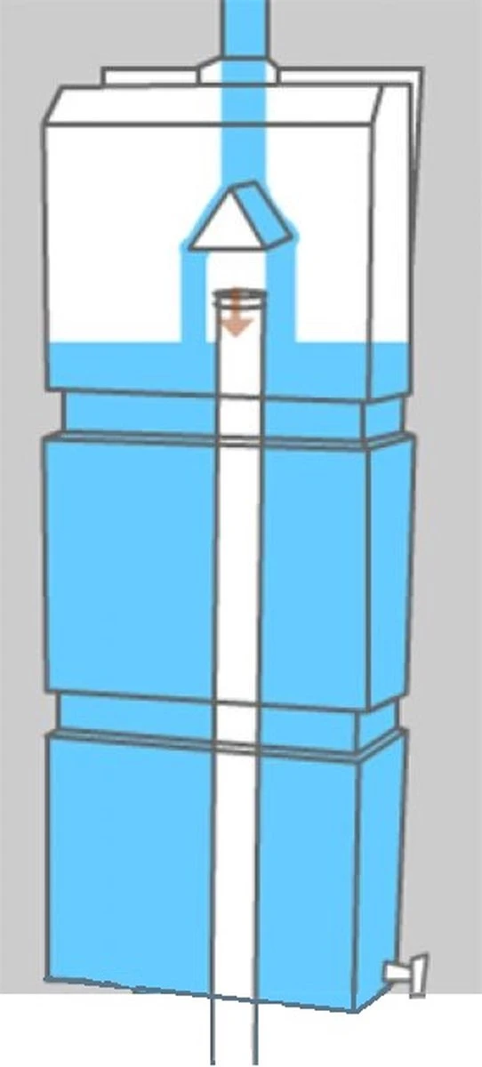 • Vult automatisch en verdeelt het overtollige water ook weer automatisch.