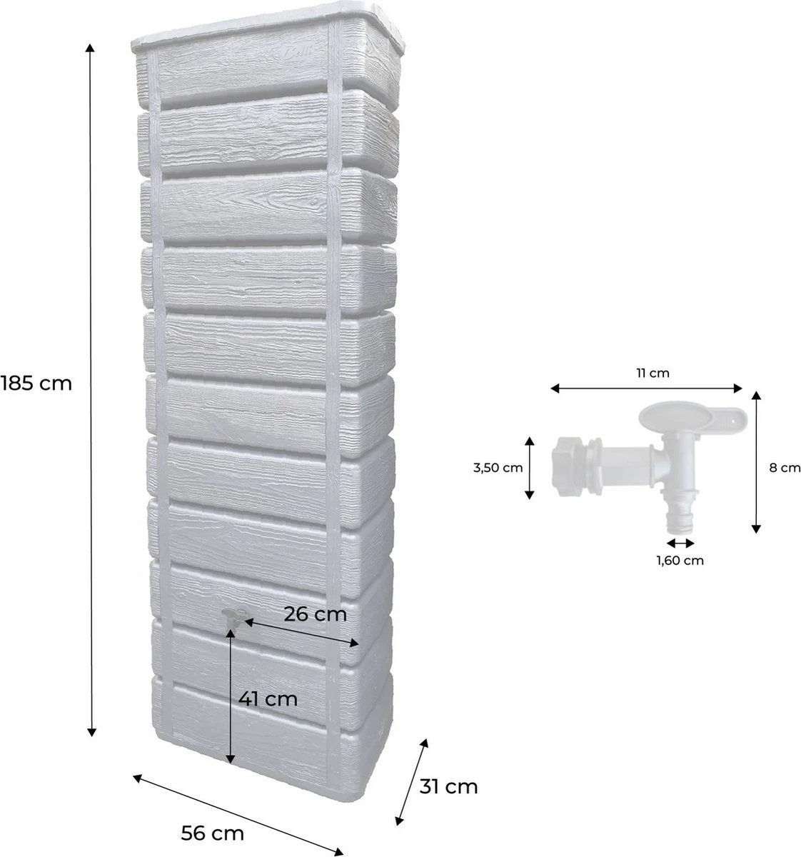 Regenton Muurtank, Grandval 300L, Antraciet Kunststof, Imitatiehout, Met Gootaansluitset Inbegrepen