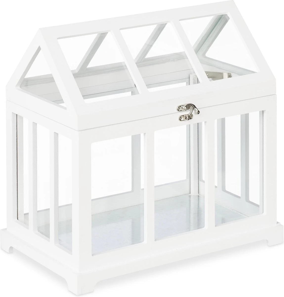 Indoor tuinieren is helemaal in. Met deze bestaande uit 2 mini kweekkassen kun ook jij binnen in huis aan de slag gaan met tuinieren. Zet de kleine kweekkas op de vensterbank en gebruik hem voor het opkweken van zaden. Kweek verse kruiden in het kasje of geniet van je mooie bloemen. Deze set met plantenkassen in 2 groottes is ook geschikt voor vetplanten. Het dak kun je omhoog doen en dit zorgt voor een optimale luchtcirculatie. Je kunt het glazen kasje overigens ook gewoon als decoratie gebruiken.