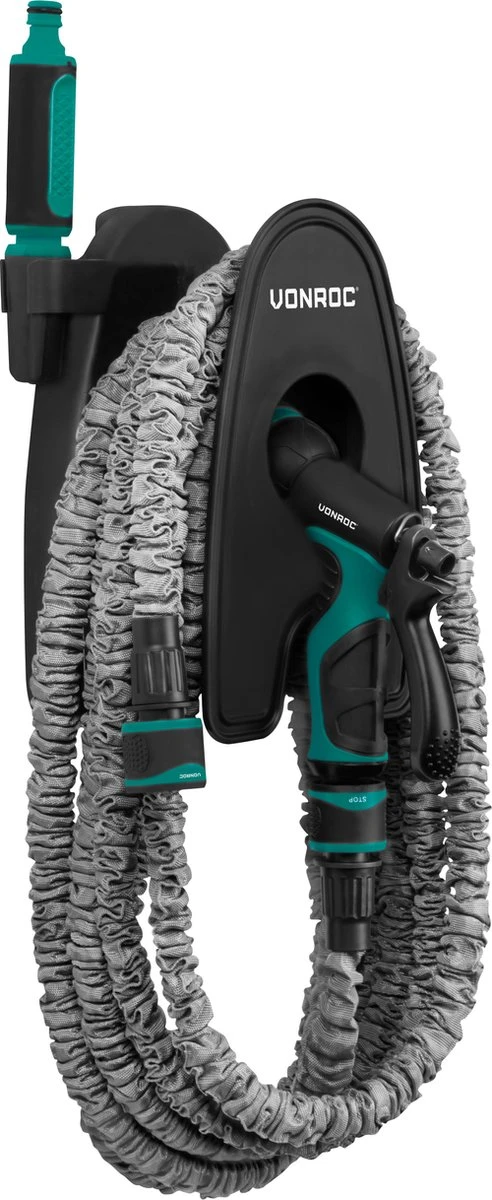 VONROC Tuinslang – Uitrekbare Tuinslang 20 Meter – Incl. Aansluitingen, Muursteun, Spuitstuk En Broespistool