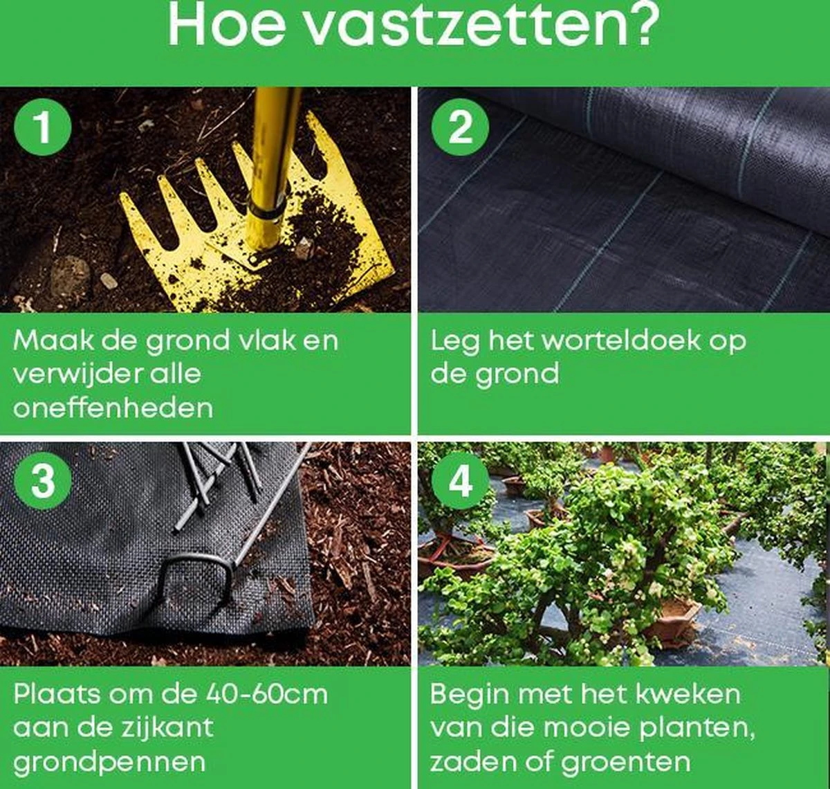 Hoe gebruik je een grondpen met het vastzetten van worteldoeken, gronddoeken, kunstgras, landbouwplastic en andere doeken?